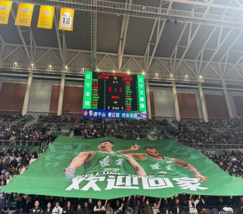 辽宁球迷主场巨幅海报欢迎张镇麟与弗格“回家”。